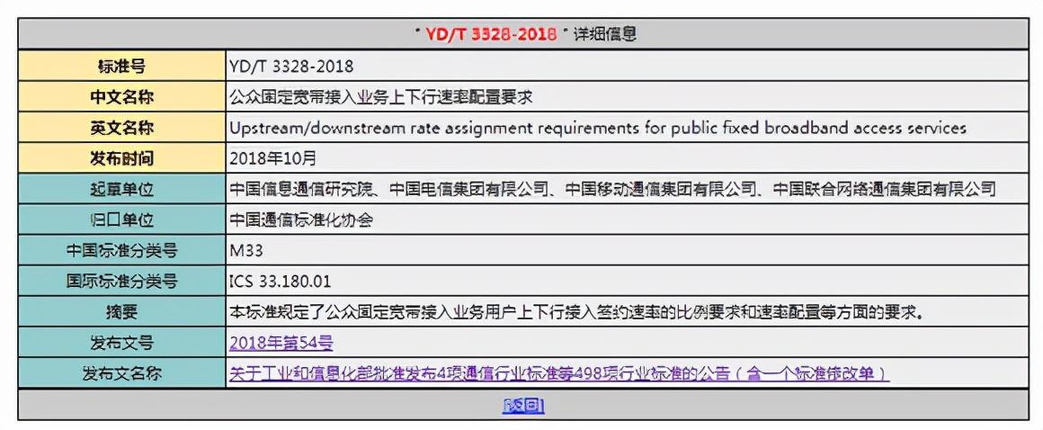 上面说的这些都是下行速度,也就是你访问互联网时的速率,至于上行速度则没有一个统一的标准,但是根据工信部最新文件所制定的YD/T3328-2018号标准来看,通信运营商提供网络的上行速度不得低于下行速度五分之一