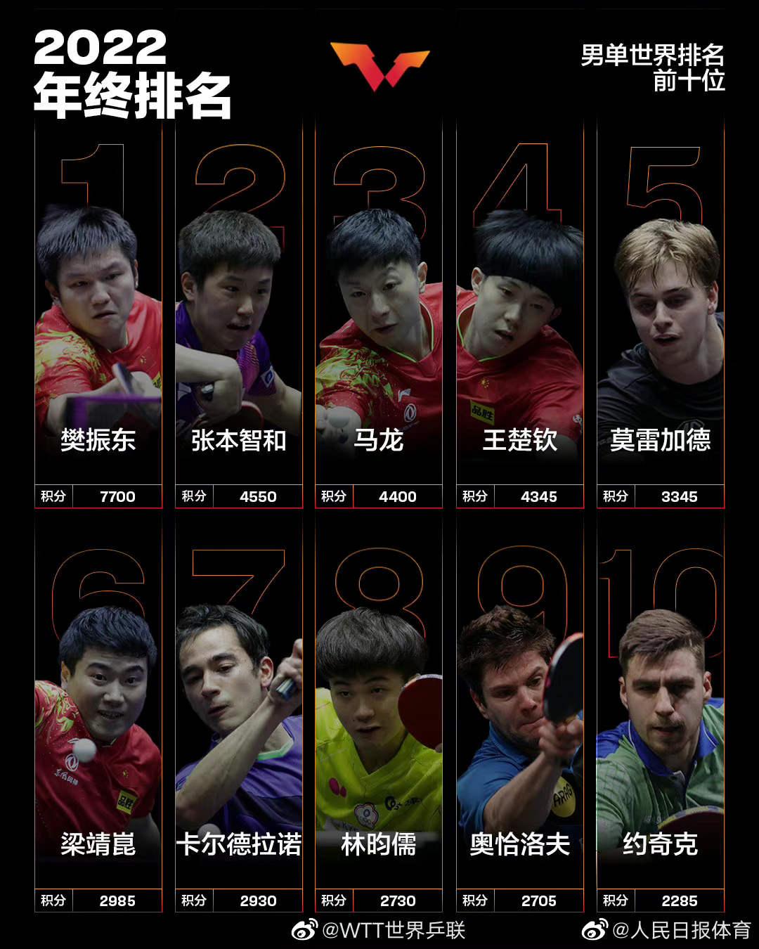 孙颖莎成首位00后年终世界第一(孙颖莎个人世界排名) 2022-12-29 热点新闻 8455 作者:网友投稿 国际乒联2022年终世界排名出炉,中国队小将孙颖莎以8270分收获了自己职业生涯的第一个年终世界第一,这也是00后选手第一次拿到年终第一的成绩。恭喜!