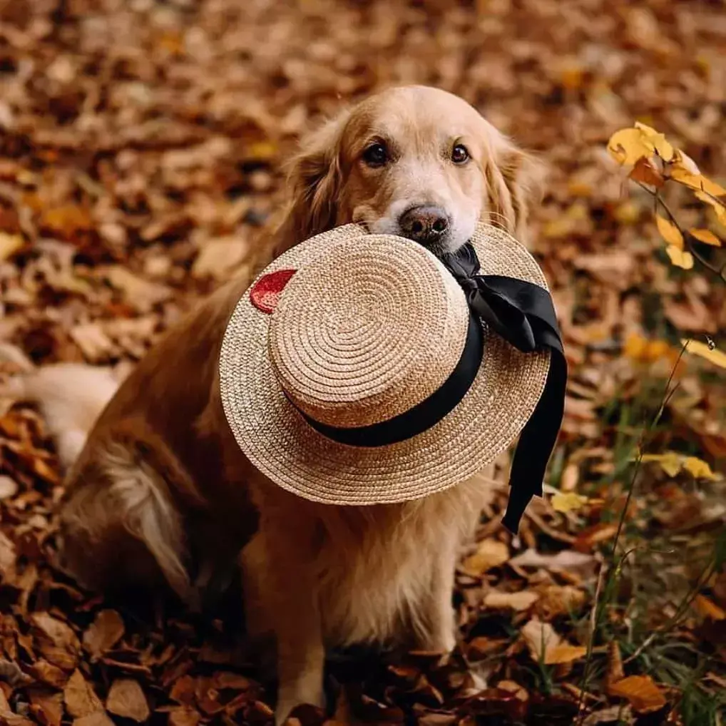 就和狗狗开始了忙碌的采花工作;