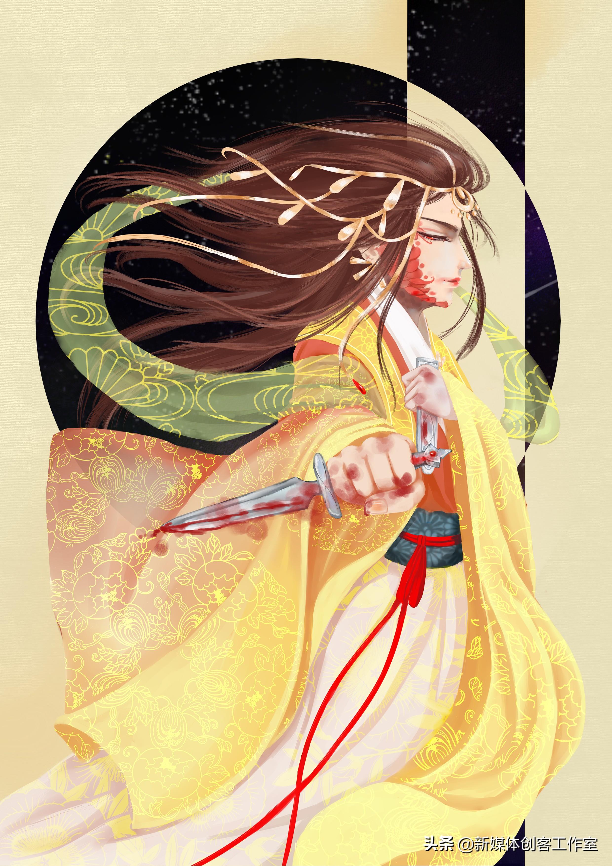 每张插画是根据每个星君的传说故事在进行构图,再根据其特性并结合中国传统服饰进行绘制。背景则通过简单的几何图形透出美丽的夜空。